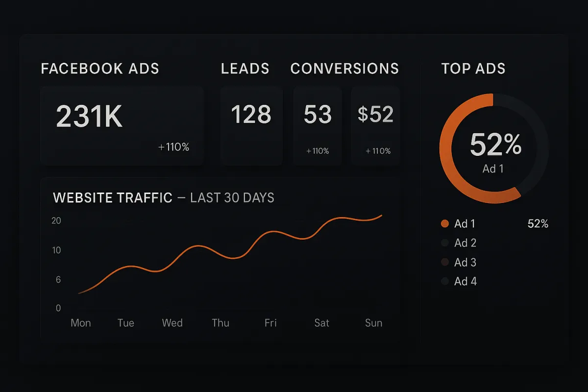 You get a weekly dashboard (leads, booked consults, CPL, ad spend) and bi-weekly strategy calls. We translate consults → expected revenue so you can see direct ROI.